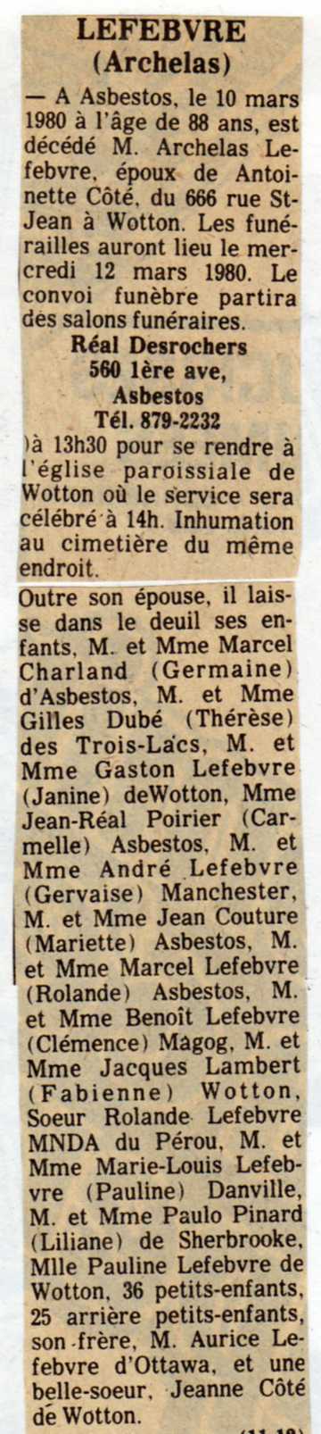 Lefebvre Archelas 1980 03 10